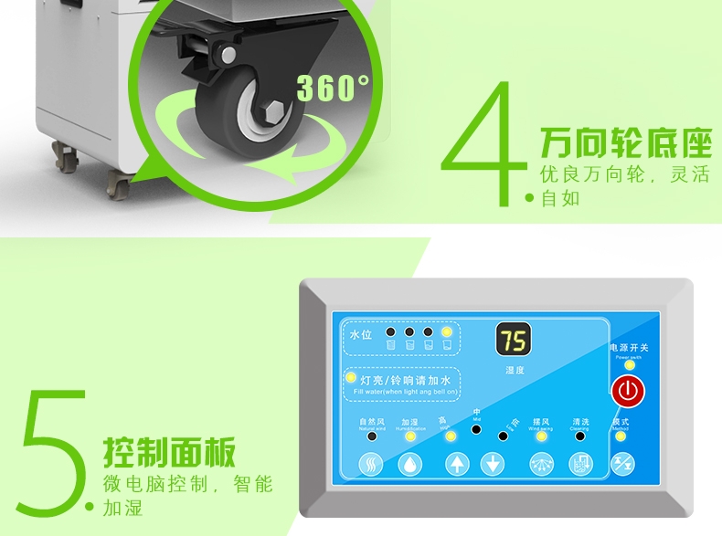 具有加湿及通风两种工作模式,加湿运行时,具有加湿和降温双重功效。